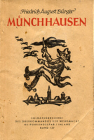 Münchhausen. Wunderbare Reisen zu Wasser und zu Lande, Feldzüge und lustige Abenteuer des Freiherrn von Münchhausen, wie er dieselben bei der Flasche im Zirkel seiner Freunde selbst zu erzählen pflegt. Berlin: Oberkommando der Wehrmacht NS-Führungsstab Abt. Inland, 1943 [Soldatenbücherei Band 137] Broschur; Format 12 x 18; 130 Seiten Inselbücherei Band 7 Insel Verlag Leipzig Titelbild von Karl Stratil Kamerad, denk daran: Auch deine Kameraden wollen dies Buch lesen. Gib es darum weiter! Nur für den Gebrauch innerhalb der Wehrmacht Gesamtherstellung: Alsatiia Verlag AG. Kolmar Bände der Soldatenbücherei dürfen nur auf dem Dienstwege angefordert werden. Anfragen beim OKW - unter Umgehung des Dienstweges - sind verboten. Anfragen bei Verlagen oder Druckereien zwecklos. Deutschland [SCH 1943/19] |