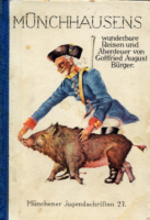 Ein identischer Druck im Bibliothekseinband: Münchhausens wunderbare Reisen und Abenteuer von Gottfried August Bürger. Kevelaer: Butzon & Bercker G.m.b.H., 1918 [Münchener Jugendschriften Nr. 27] Halbleinenband; Format 12,2 x 17,7; 64 Seiten Alle in die Sammlung »Münchener Jugendschriften« aufgenommenen Erzählungen sind von bewährten Jugenderziehern ausgesucht, bezw. bearbeitet worden. Alle Rechte vorbehalten. Deutschland [SCH 1918/04] |