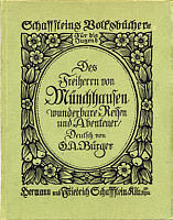 Köln am Rhein: Hermann Schaffstein, 1921 [Schaffsteins Volksbücher Band 16] 13tes bis 15tes Tausend Halbleinenband; Format 15,9 x 20,6; 78 + 2 Seiten Vorrede von Wilhelm Spohr 1905 Deutsch von Gottfried August Bürger. Bearbeitet von Gaup. [Als Bearbeiter in der Liste der Volksbücher am Ende des Buchs aufgeführt.] Mit farbigen Bildern von J. von Diveky Einband von C. Joh. Köhler [Buchausstattung von E. R. Weiß] Gedruckt in der Roßberg'schen Buchdruckerei, Leipzig. Deutschland [SCH 1921/01] |