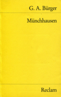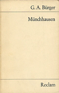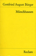 Wunderbare Reisen zu Wasser und Lande, Feldzüge und lustige Abenteuer des Freiherrn von Münchhausen. Stuttgart: Philipp Reclam jun., 1980 [Reclams Universal-Bibliothek Band 121] Broschur; Format 9,6 x 15,1; 173 + 3 Seiten Nach der Ausgabe von 1788. Mit einem Anhang älterer Lügendichtungen. Herausgegeben von Irene Ruttmann . Alle Rechte vorbehalten. © 1969 Philipp Reclam jun., Stuttgart. Herstellung: Reclam, Stuttgart. Printed in Germany 1980 ISBN 3-15-000121-8 Deutschland [SCH 1980/13 |