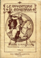 Barone di Munchausen. Volume 1 Milano Via Silivio Pellico N. 6: Scuola Cosmopolita (glà Cosmopolitan School), 1924 [Le Avventure di Bombarda] Heft; Format 11,8 x 16,5; 52 Seiten Tradizione in Stenografia [Illstrationen von] Canigioli S.A. Tip. Moderna Gallarate Italien [SCH 1924/11] |